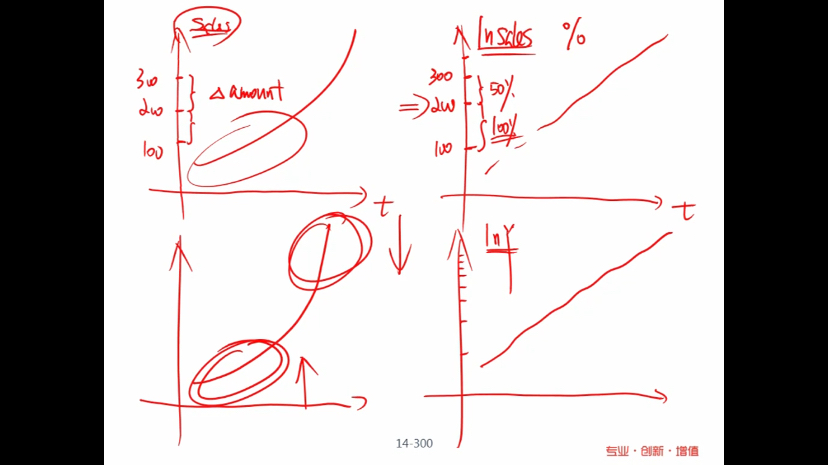 这地方似懂非懂,已经把对数作为y了,y上写的数字100,200,300又代表百分比,且每段距离不相同,是什么意思,能不能举个有数字的例子,详细说明下