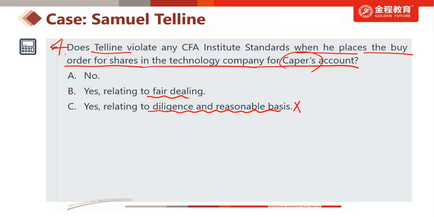 第4题,为什么不选择C呢?原文中虽然提到 it would be suitable under Caper's new IPS ,但是根据上一段描述Telline在更新Caper的IPS时直接参考其他类似客户的IPS,而且还没有意识到两位客户tax situation不同,是不是可以认为给Caper 的new IPS就有问题,从而导致第4题中的buy order也存在问题、并不真的适合Caper?