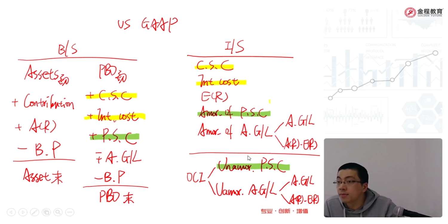 在美国准则下讲到 PSC 时,假设 在B/s中的 PSC 为10,。在I/S中的 amortised PSC 为1, unamortised 的PSC 为9,。这样的数值在B/S中,就不平了,为什么
