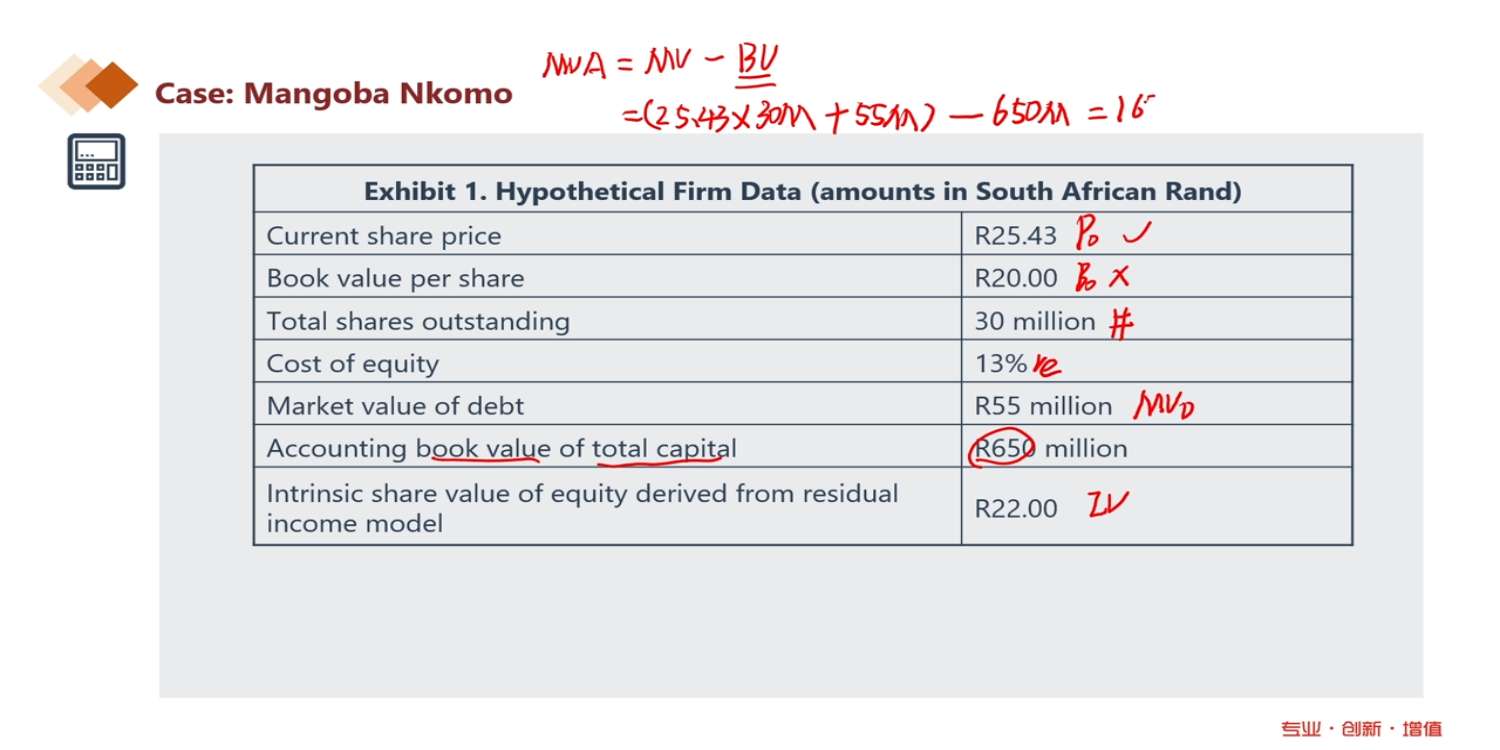 如果没直接给总资本账面价值的数字,根据B/S 如何计算出该数字