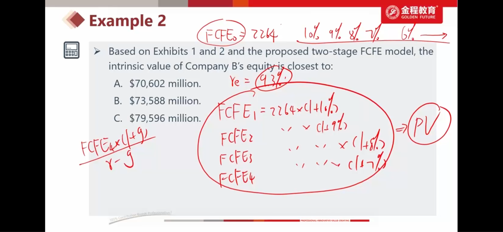老师好,29题如果时间节点改成5,算出5的FCFE5➕TV5=84520.1649,最后NPV为63176.5052为什么跟4作为节点的结果差这么多,怎么选择节点呢?谢谢