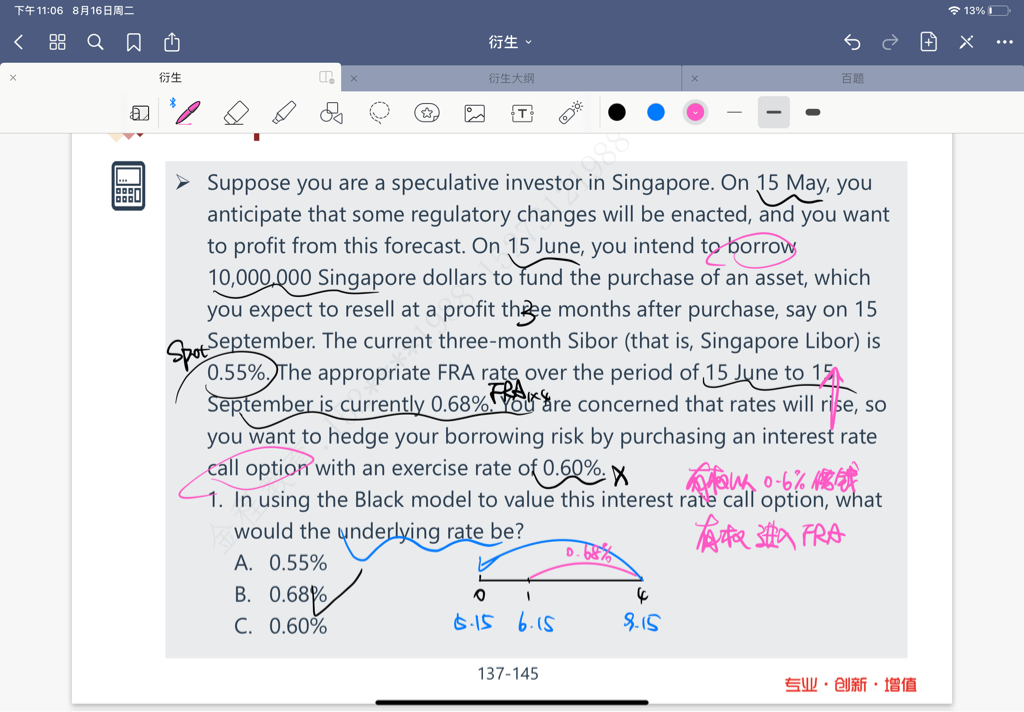 老师 我这里有点绕晕了 interest rate option 是我有权在0时点进入一个1*4的FRA对吧 也就是有权在1时点以0.68%借钱,那这个option的行权利率0.6%是什么意思呢