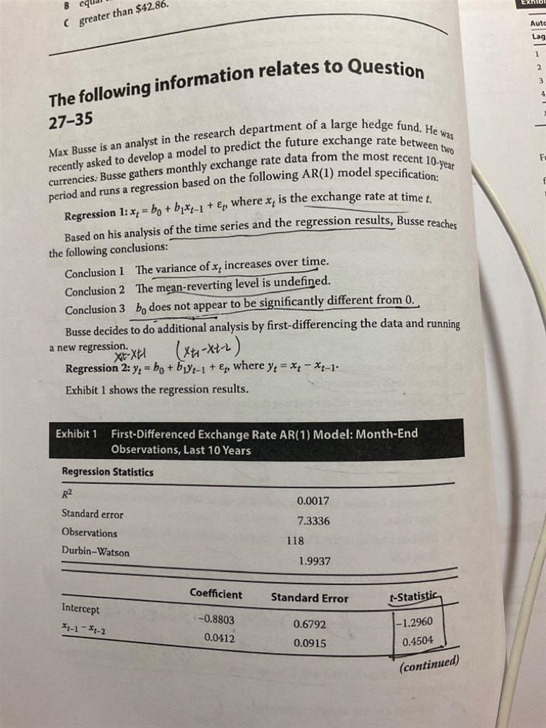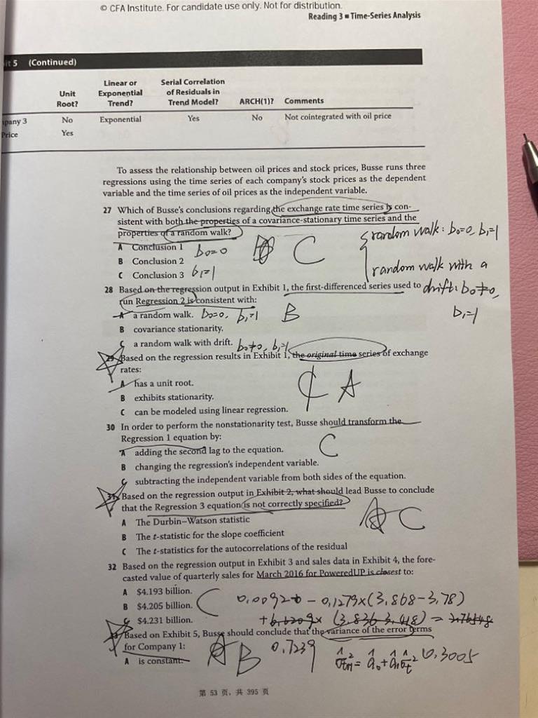 经典题reading3的第29题不太懂,表1是regression2的回归结果,regression2是regression1的一阶差分,不知道这两个之间有什么联系,29题的选项都是怎么分析出来的?