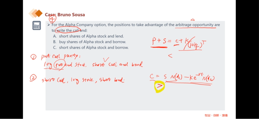 - 很迷惑到底是long call+ short stock还是long stock+short call构建无风险资产