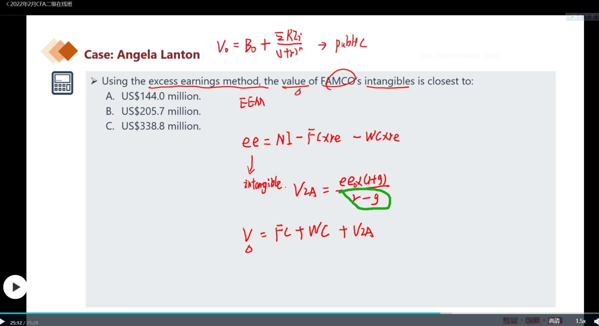 为什么这个地方的无形资产的回报率需要除r-g,而不是和其他两个资产一样,除要求回报率(r)就好了