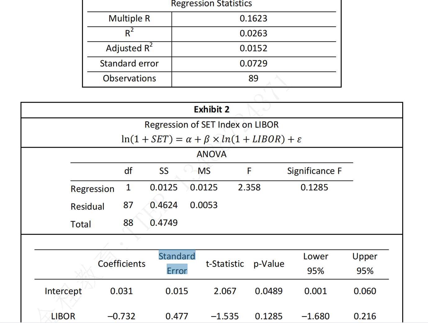 第一张表上的standard_error0.0729和下面的表二的standard_error有啥不同/联系吗?
