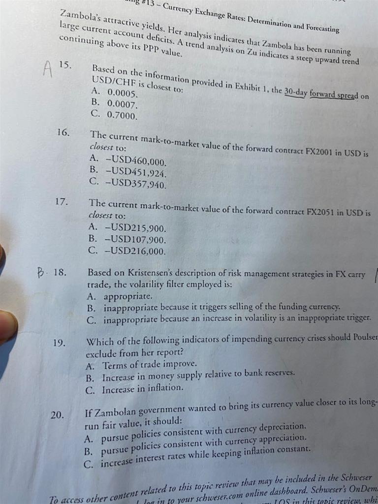 老师,汇率这章notes课后题,Q15,我能猜到正确做法。但能否明确下forward spread指的是什么啊? 还有Q18是考carry trade的风险管理,volatility filter, 这个考纲里还有吗?