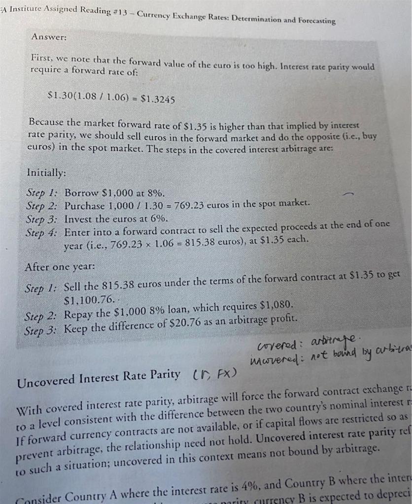 老师,CIR求arbitrage profit,notes上这道例题,第一步我知道,市场的forward rate1.35比IRP算出来的1.3245大,欧元在远期市场更值钱,所以低买高卖,在现在的市场买欧元。那直接买就行了为什么要借美元来买?