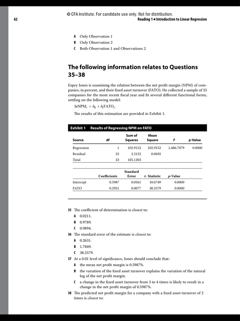 查看试题 已回答我看其他同学提问:为什么?If the consensus inflation forecast is unbiased, then the intercept, b0, should equal 0, and the slope coefficient, b1, should equal 1.老师回答:你好,因为根据exhibit 1中可以看到intercept系数接近于0,而slope的系数接近于1,所以可以通过计算斜率和截距的t检验值,(regression coefficient—检验值)/sb,这里的检验值分别带入0,1以及对应的回归系数,标准误。如果计算出来t检验值大于t关键值,则拒绝原假设(截距不为0,斜率不为1),证明如果回归结果是无偏的,则截距是0,斜率为1。我不理解:slope的系数接近于1是从哪里体现出来的?intercept系数接近于0指的是表格里Intercept Coefficients=0.0001这部分吗?谢谢老师!