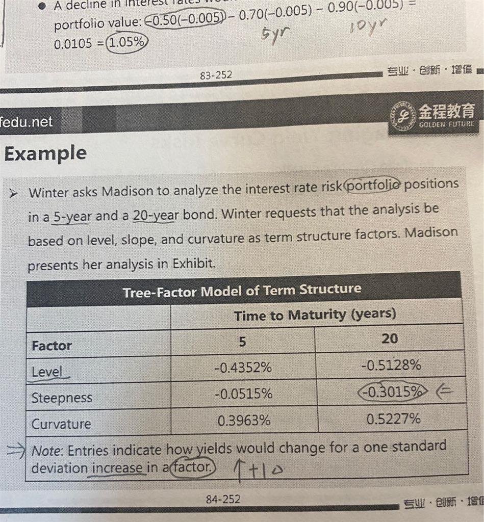 老师,key rate duration讲义里的例题,note说的是one standard deviation increase in a factor对yield的影响,而老师讲的是对组合value的影响。应该是对哪个的影响?