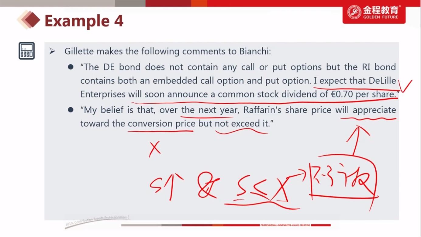 已回答这种题是 无论conversion price 大于或小于stock price 应该 convertible bond return都小啊 因为进可攻退可守 risk 小所以retrun就小吧?还是说分情况讨论?