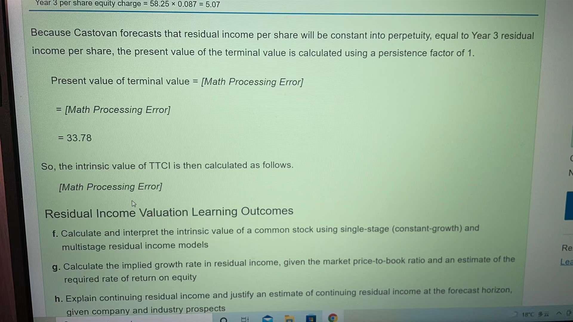 前面3年的RI 算出来了,但是不知道33.78 的terminal value 是怎么计算的,算不出来这个答案