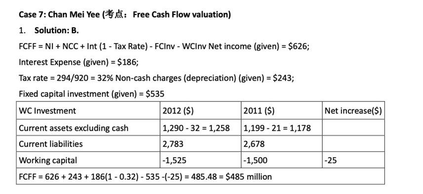 case7question1这里,请问working capital的计算公式到底是什么呢?以及WCInv的计算公式又是什么,和working capital什么关系呢?我看之前好像说到WCInv= change in WC=WC期末数减去WC期初数,WC=(current asset-cash)-(current liability-debt),麻烦老师详细解释一下?这里的debt是不是指含息的债务,是不是包含note payable,long-term debt还有什么呢?谢谢老师!