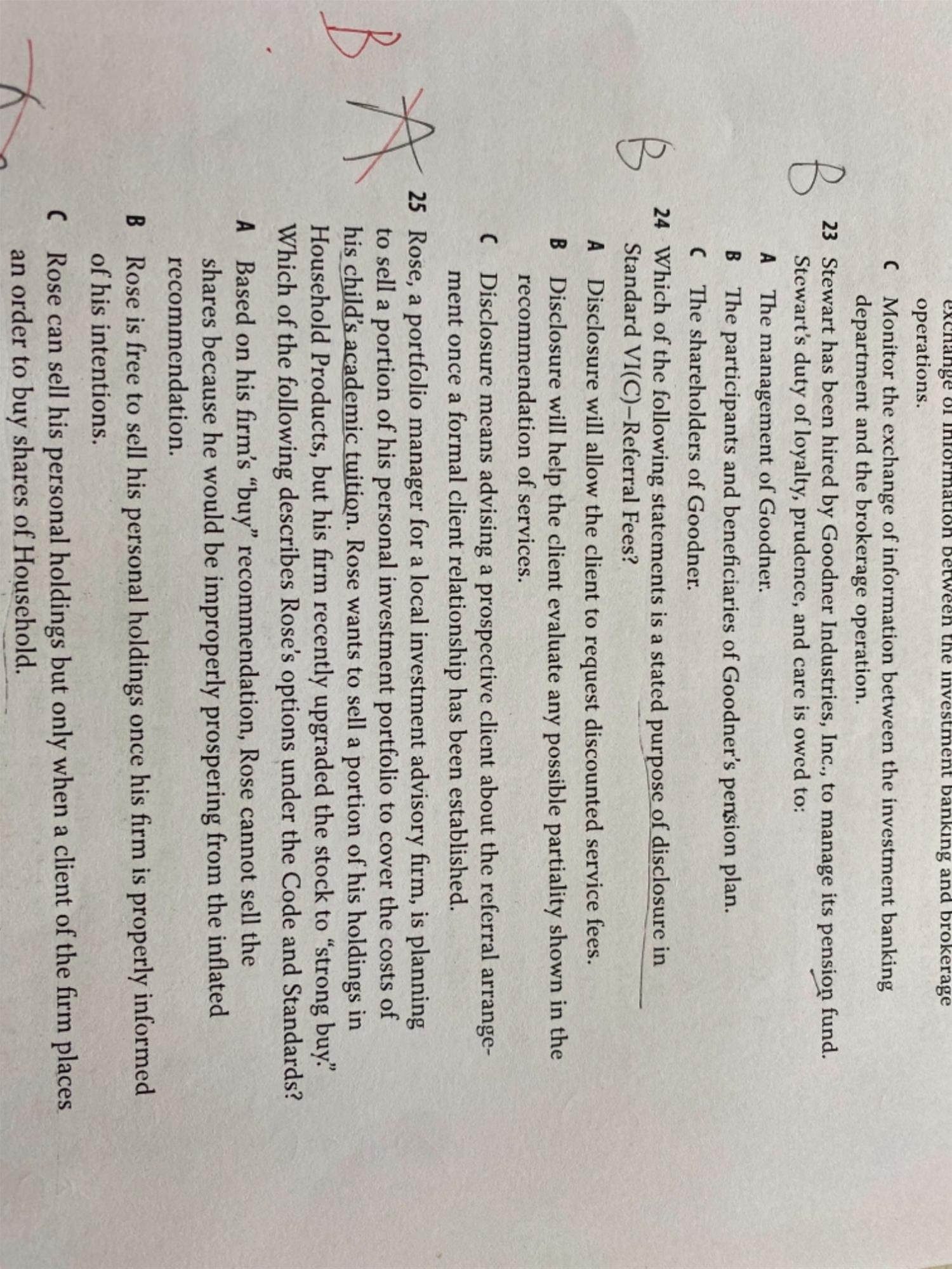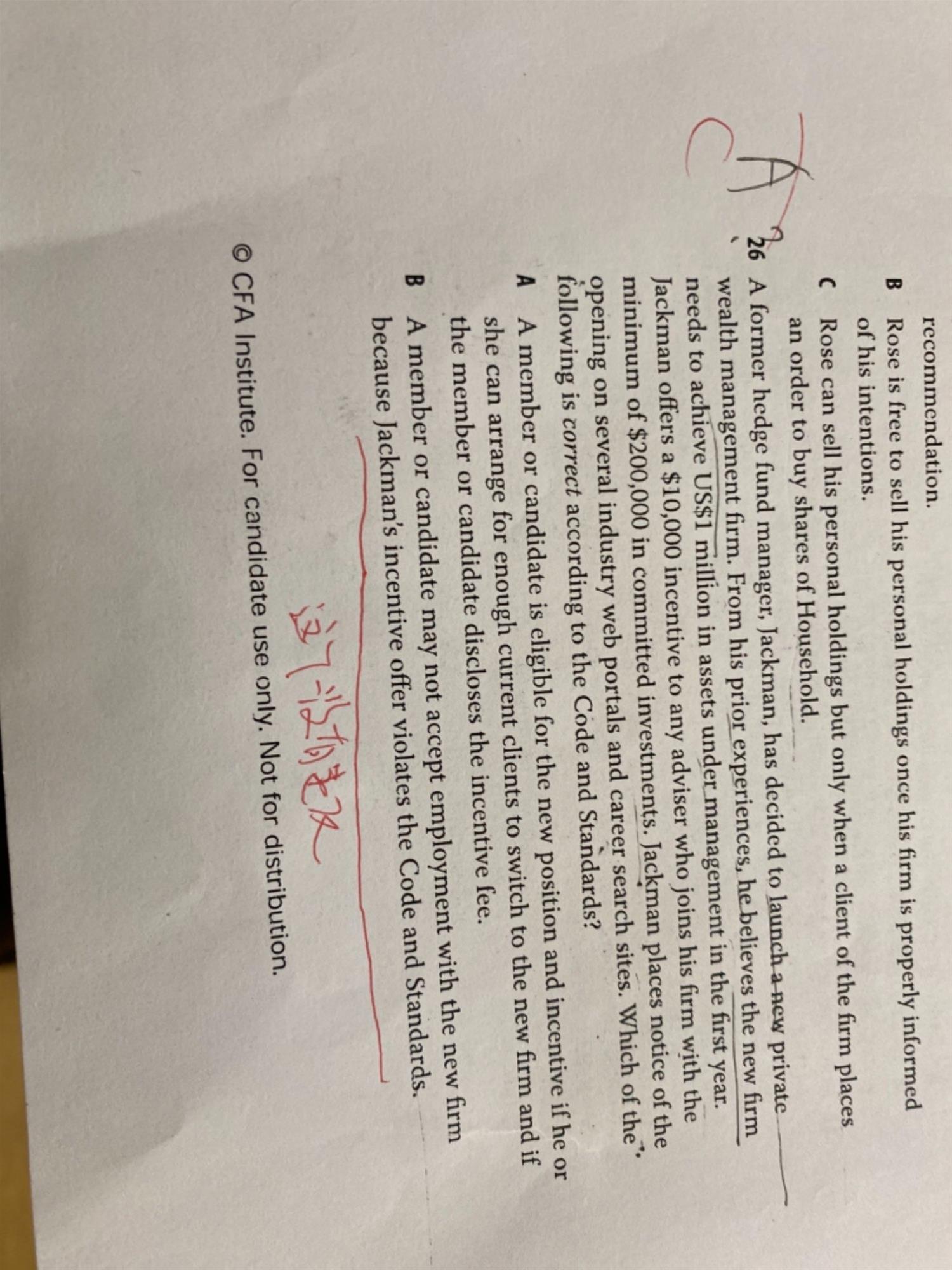 课后题25答案选B,但我记得有一种情形是仅有在家里遇到急需用钱的比如家人生病的情况下才能违背公司投资建议卖出个人账户股票。难道没有这条规定吗?只要雇主同意,基金经理个人账户就能先于客户账户交易吗?