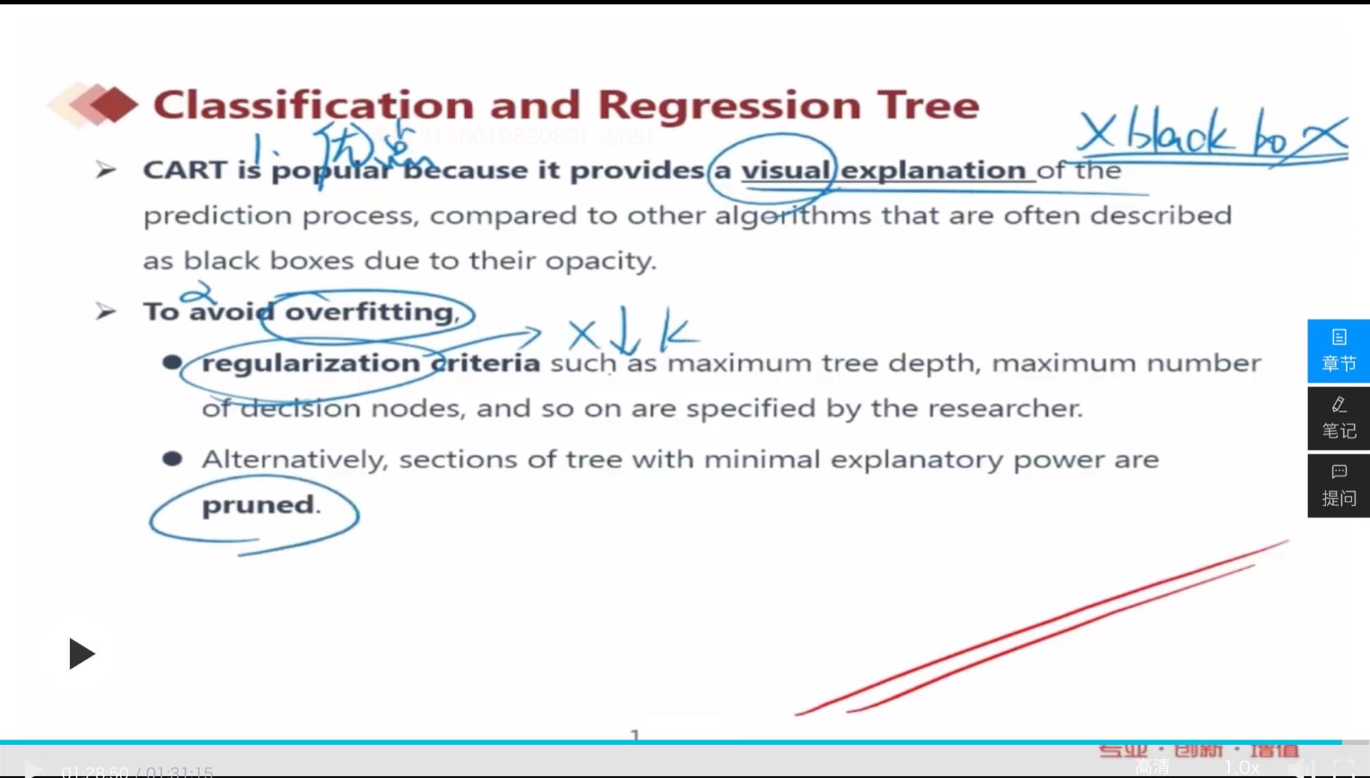 老师,这里regularization的英文解释是最大化decision nodes的数量,但是视频里老师说要减少x的数量,讲义上的解释是和课上讲的有矛盾吗?