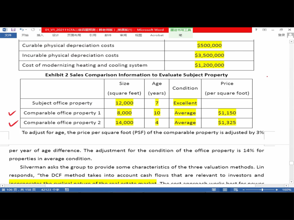 这里的1150是一号房产的价格吗,没懂1150为什么放在可比房产的那一栏里面呢