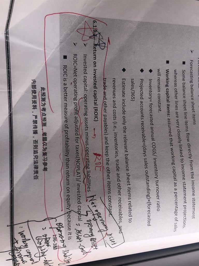 已回答请帮忙看下理解是否有问题,谢谢 ROIC指标的分母一个是invested capital : net operating asset=(asset-cash)-(liability-debt)|这个是不是等于 working capital invest + fixed asset invest= CFO+CFI ? 意思是不考虑公司资本结构的问题,管理层/公司真正投到经营中的资本得到的回报如何 ROCE指标分母capital employed是指公司筹集到的资本CFF的情况,等于 equity + debt的 book value. 这个指标就是不考虑资本结构和税收的情况下,管理层/公司筹到的资本,通过经营所带来的回报率~ 这两个指标是有这个细微差别的,对吗?而且invested capital 和 capital employed的差异,就是公司的现金,是吗?因为这部分是代表没有在经营中用上?