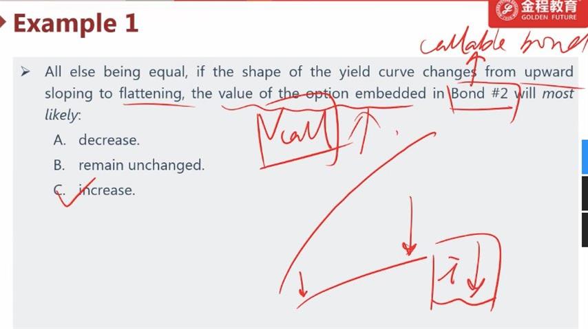 请问这里,为什么长期利率下降,bond price 上升,为什么value of call上升?