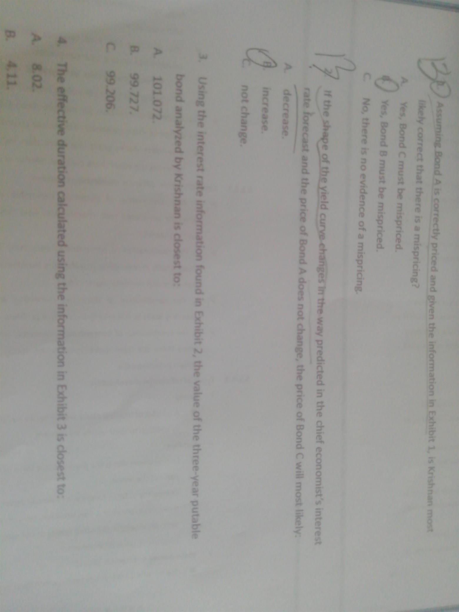 固收得第6case得第二题得题目中前半句话说bondA得价格保持不变,没有懂。bondA得价格怎么就保持不变了,前文说收益率曲线有flat向upward shift了,怎么A债券不变了