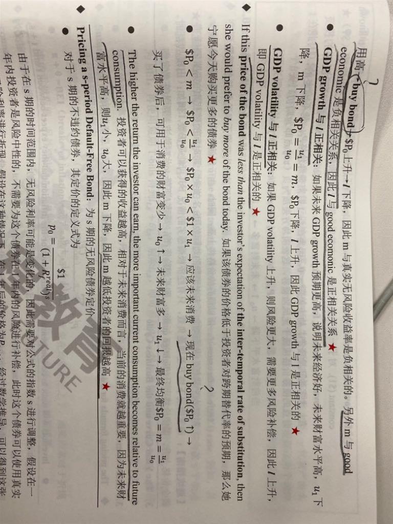 老师您好,真实的无风险利率l这里,m与l负相关推导中buy bond是什么意思呢?还有“如果该债券的价格低于投资者对跨期替代率的预期,那么它宁愿今天购买更多的债券”,这句话又该怎么理解呢?谢谢啦!