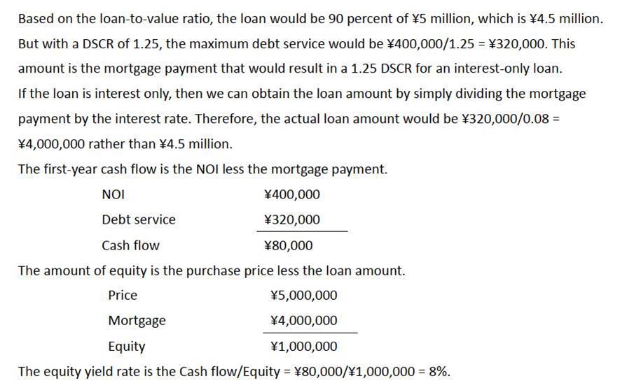 老师好,alternative case 5的第一题:1)equity dividend rate/cash on cash return到底是啥啊?2)这个计算为啥会和debt挂钩,完全没理解 可以讲讲么?谢谢