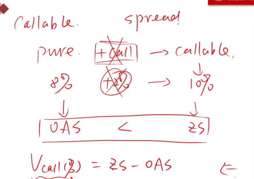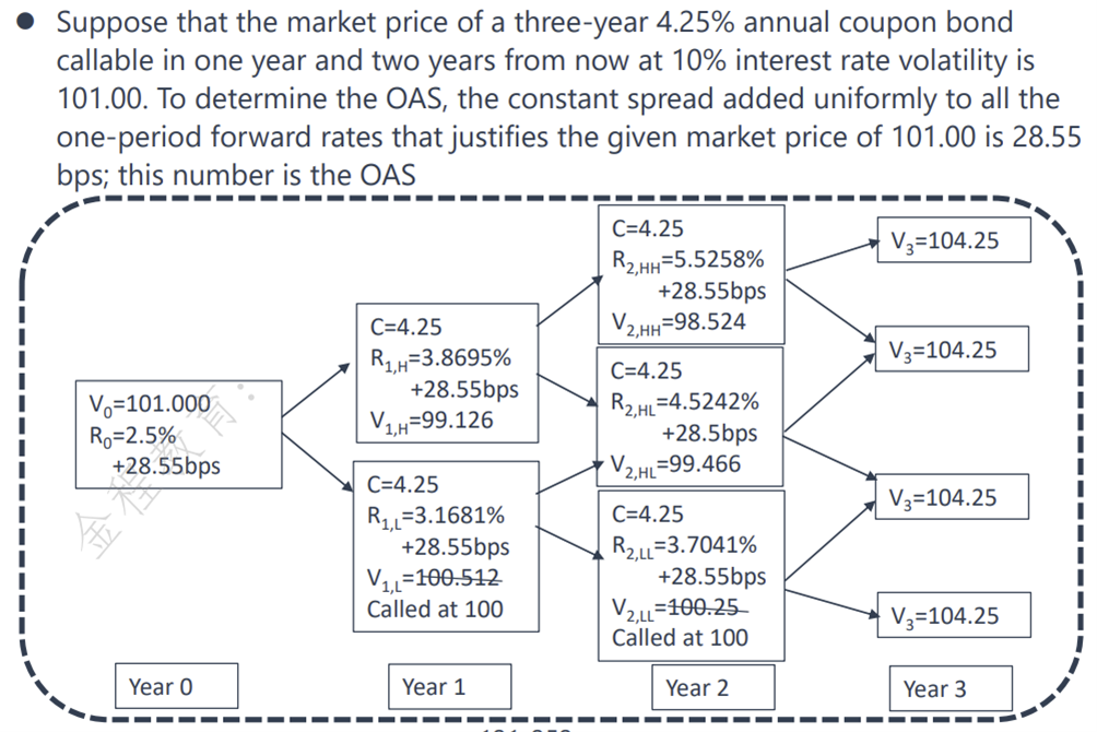 计算OAS是否可以理解为: 与之前求含权债券价格的方法相同,同样用倒推法,只不过此处给出了market value,要反推折现率。其中各期折现率拆解为各期spot rate+OAS,spot rate已知,反推OAS?
