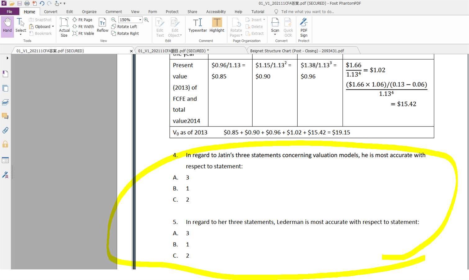 Equity case 5,这两题百题没提供答案,答案是什么呢?