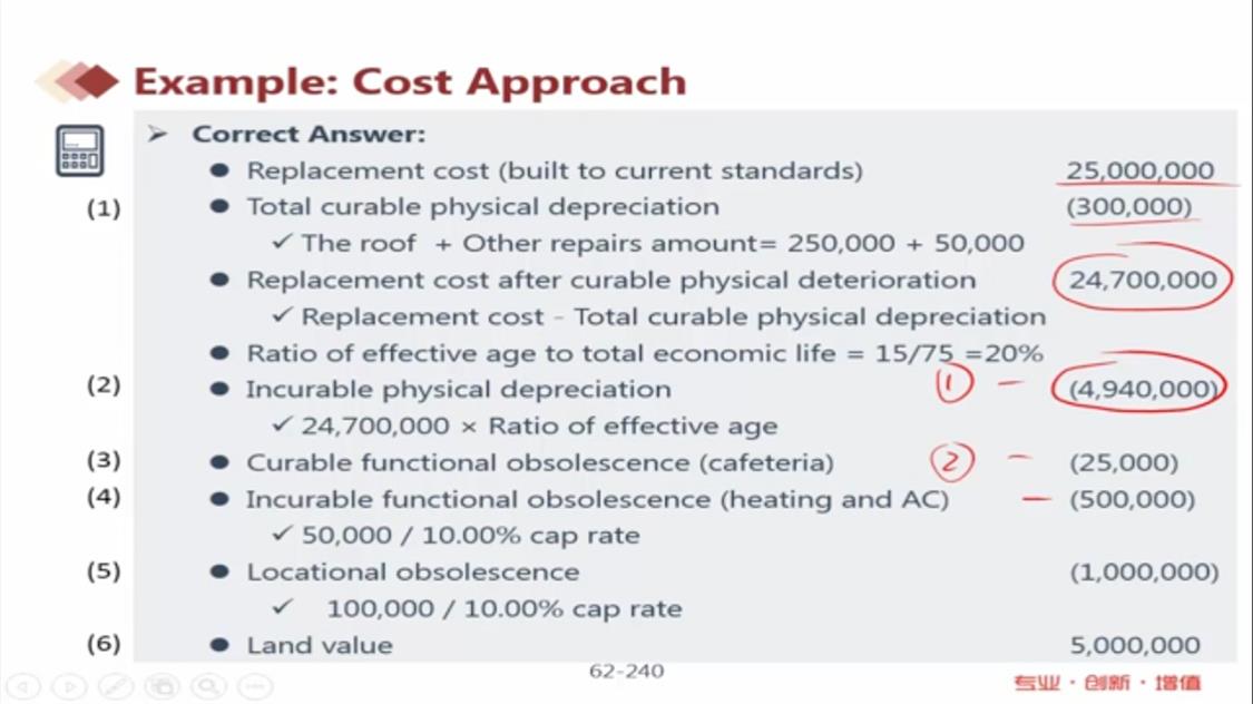 这里的incurable functional obsolescence和locational obsolescence为什么都是通过除以cap rate计算出的呢?请老师解释一下,谢谢!