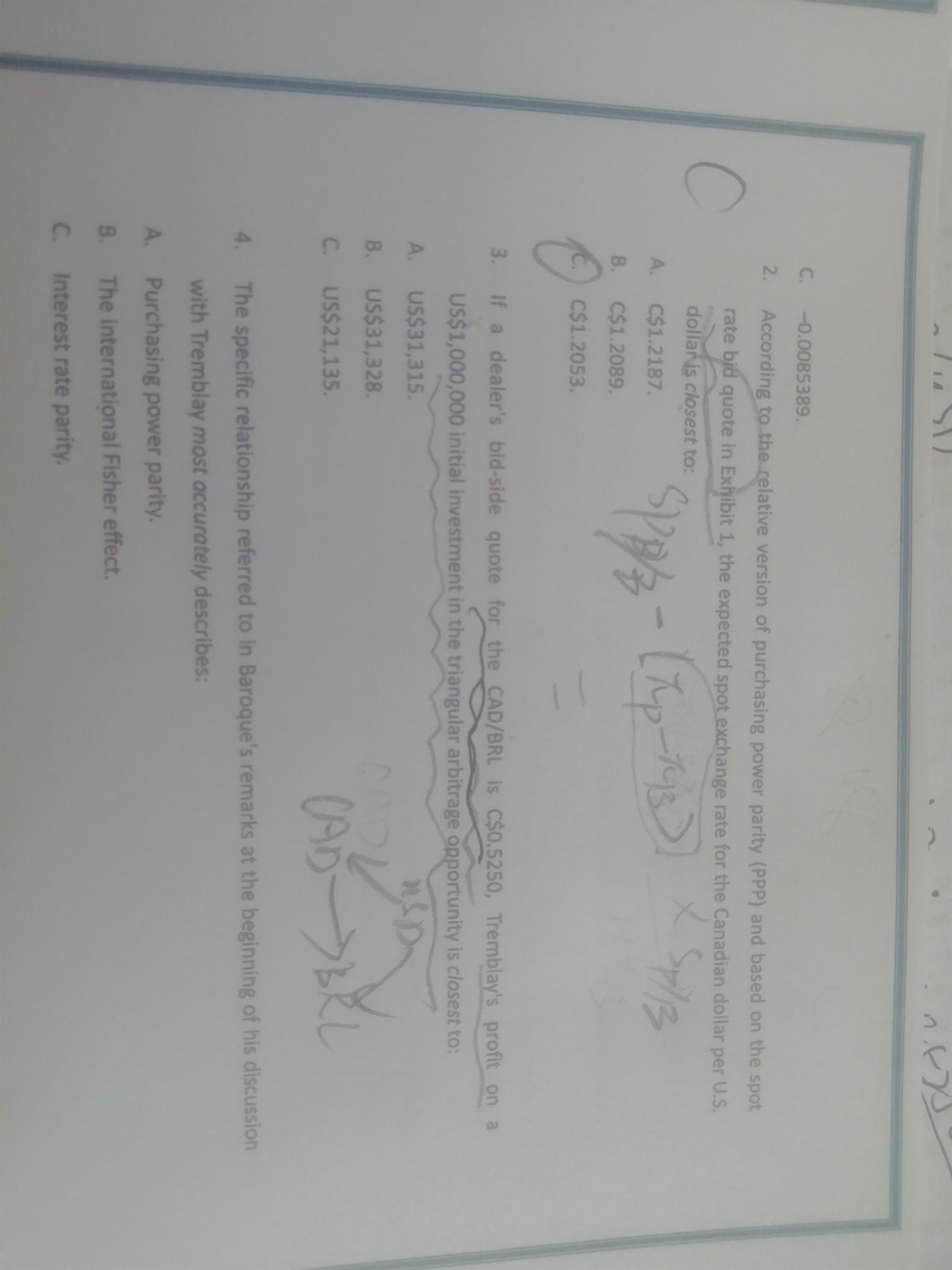 百题经济学得第三题,我没有懂为什么在从CAD换成USD时用用的汇率1.2259,最后一是要把CAD卖出去,怎么还用aSK得数字弄