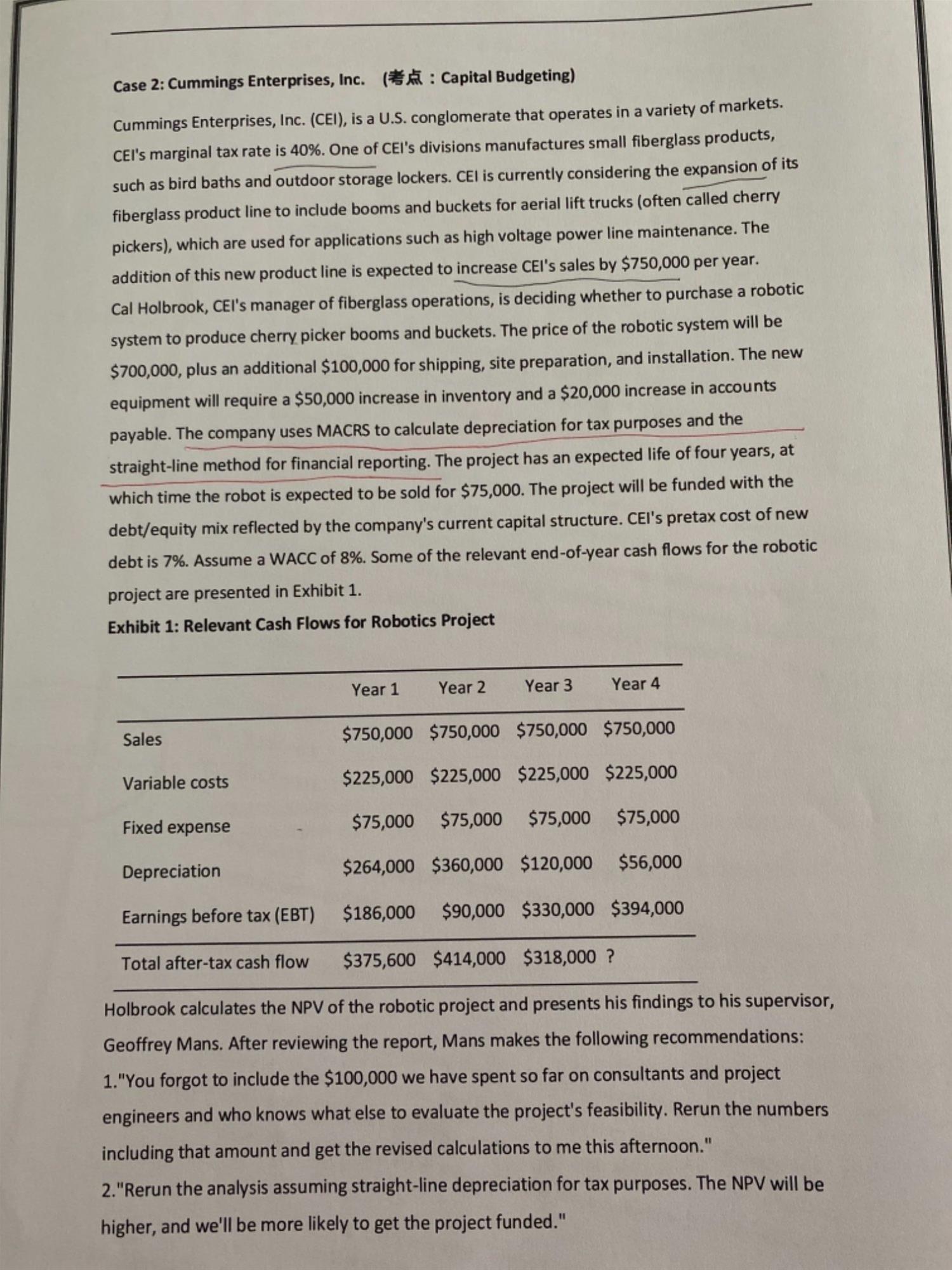 这题题干中划红线的的关于折旧的表述,应该是用哪一种计算cash flow?不用直线法吗?为什么?
