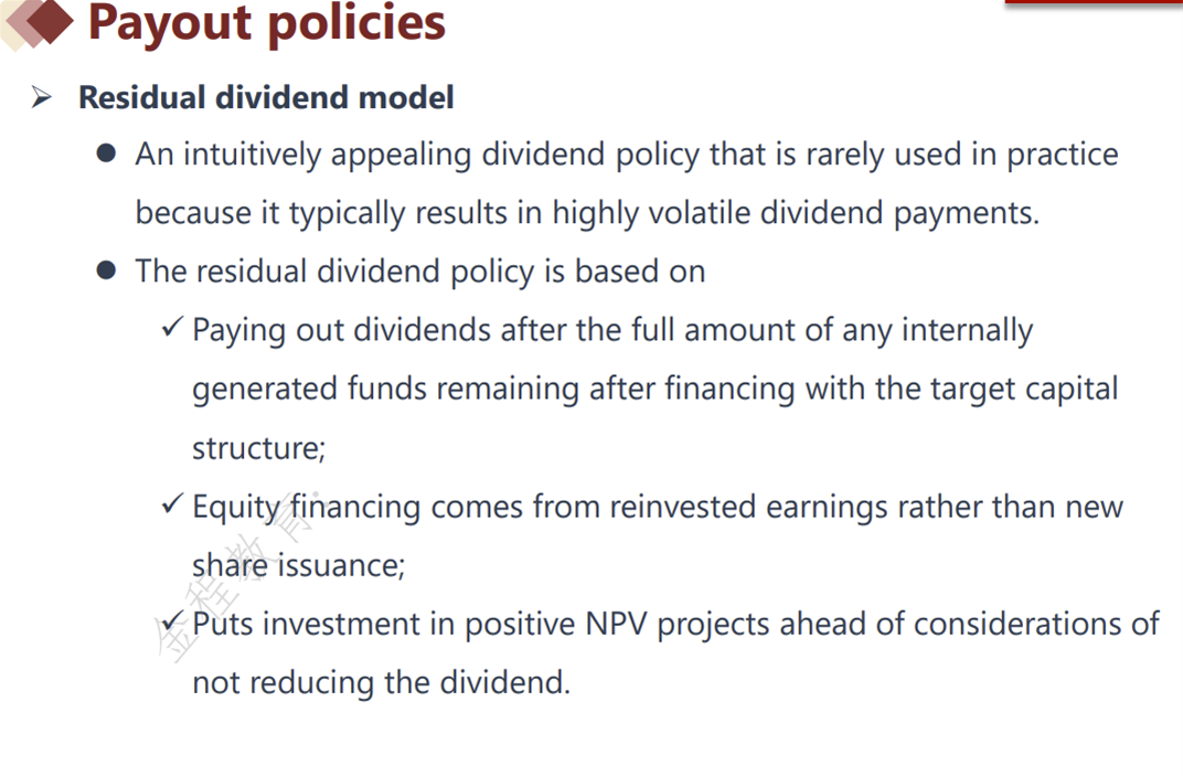 怎么视频没有讲residual dividend就突然结束了?