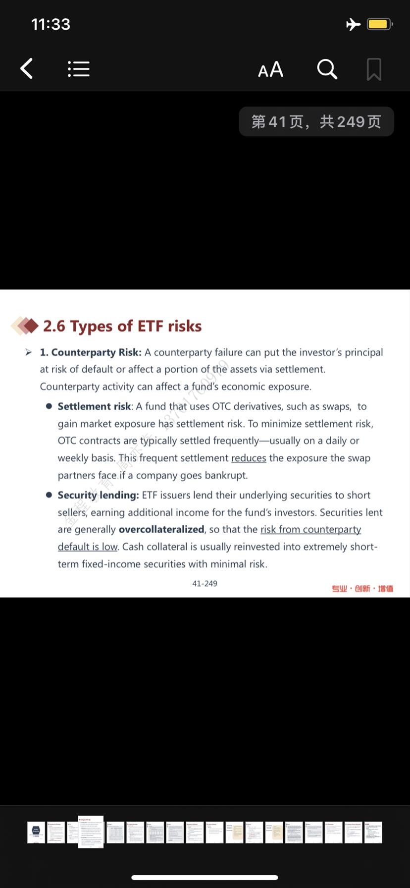 请问老师这里的counterparty risk是理解为default risk吗?为什么在讲解ETN与ETF的区别时又说ETF是没有default risk 的
