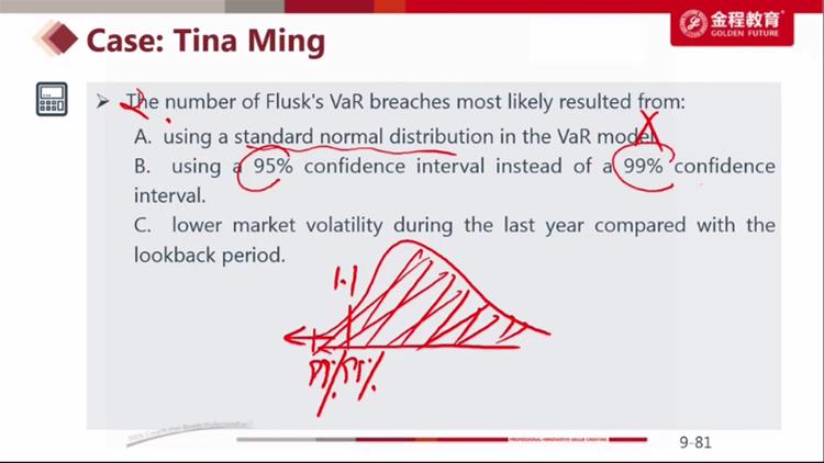 你好 老师,这个第二题我一直不理解,为什么说1.1m的最小损失没有被breach,因为是最小损失,所以只有损失超过1.1m才算是没有breach,为什么低于1.1m的损失被称为没有breach,谢谢 另外提到的历史volatility这个解释,能否具体再讲一下,举例也行,谢谢