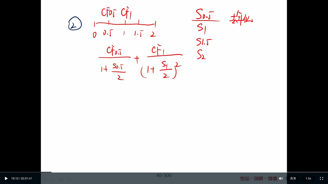 老师,这个例子里两年期债券,半年付息一次。请问为什么第一个现金流折现的时候分母不是(1+S0.5/2)的二分之一次方?