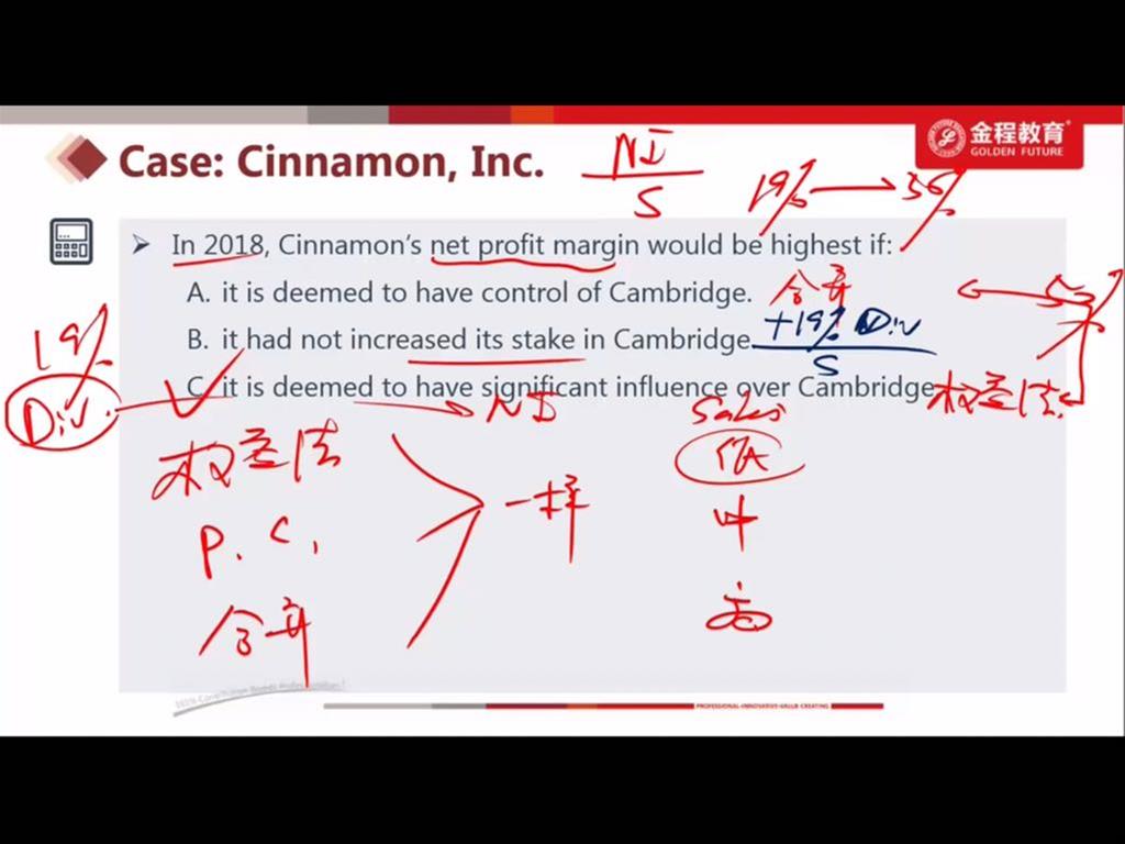 请问老师,为什么这里和基础课的结论equity在equity method和proportionate method下same,acquisition下higher不一致?