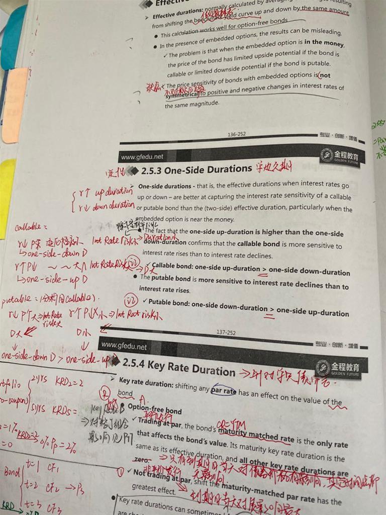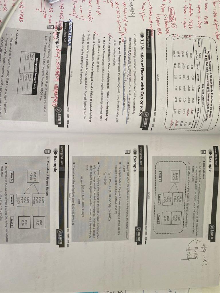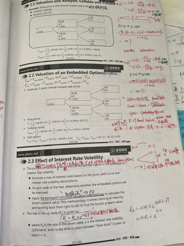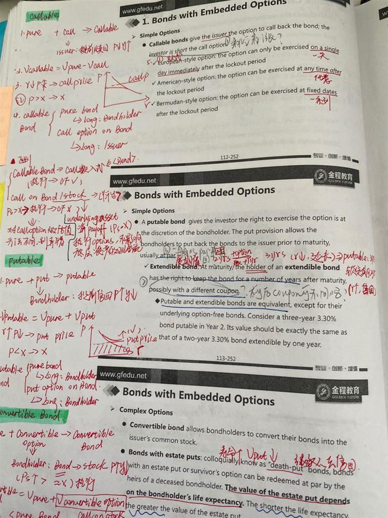 1. 一图 ppt 112 callable bond 的定义是债券持有者看空call option的意思么?2. ppt 113 extendible bond 它延展出的一年的coupon rate 和它原有期限的cr可以不同是么?那它怎么能和同期限的putable bond 等呢? 3. 二图 ppt117 Ru的公式 是什么意思?Ru Rd分别表示什么?4. 第三图ppt128 我画的两句话 有什么区别?