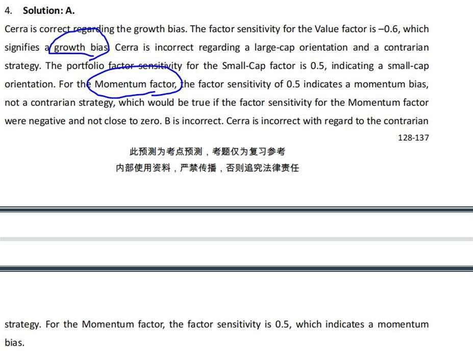百题的PORTOFOLIO第4个CASE第4个小题,为什么说是GROWTHBIAS?是什么意思,前面的FACTOR正负符号说明什么?和BENCHMARK的FACTOR正负号相反以为着什么?谢谢