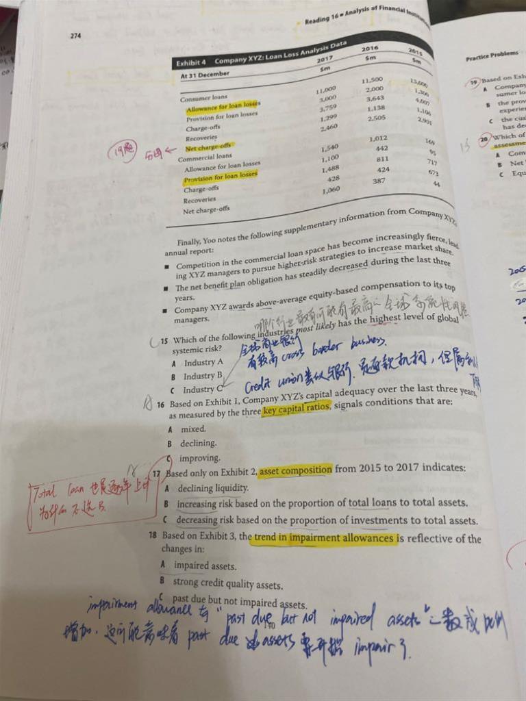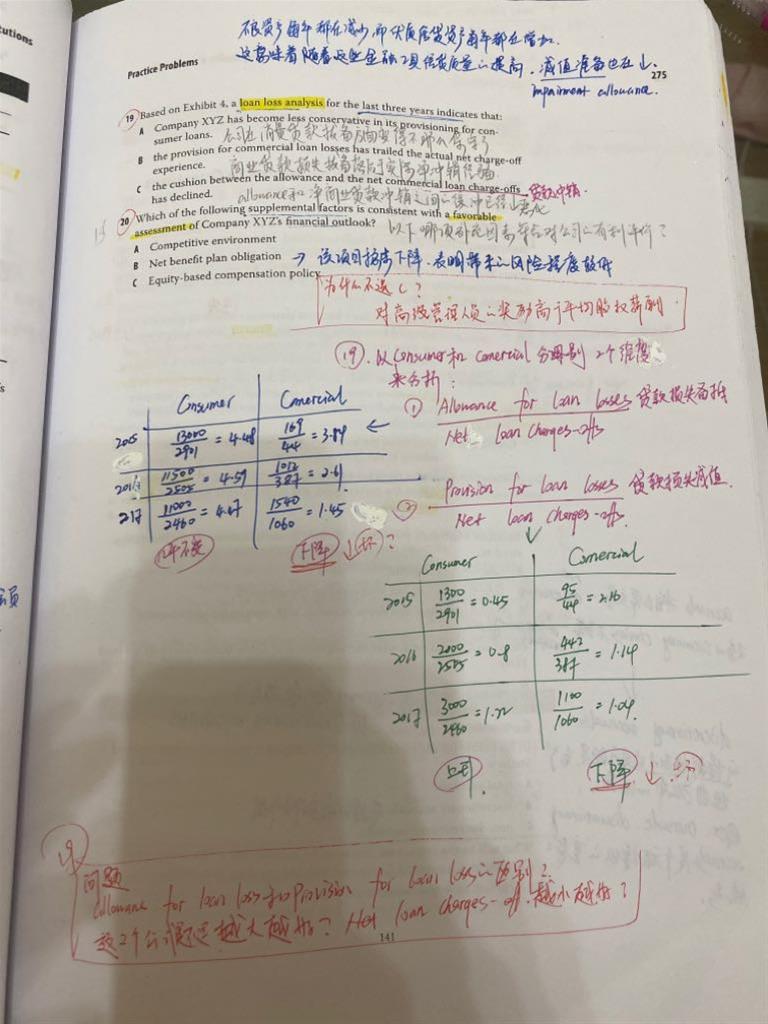 141页19题,allowance for loan loss 和 Provision for loan loss的区别? 这两个公式是不是越大越好? net loan charges-off 是越小越好吗? 20题, 为什么不选C?