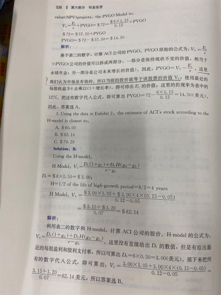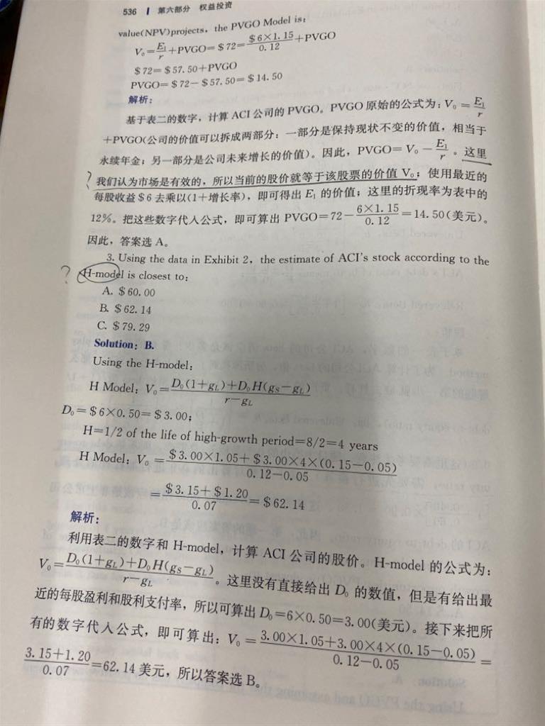 老师您好,还是精读这道题,第三问,让用H model来计算股价,但是明明这个公司是三阶段模型,也就是第一段是固定15%的增长率,第二和第三阶段才是可以使用H model,您看解答是直接使用H model进行计算。请您帮忙解析一下,谢谢!