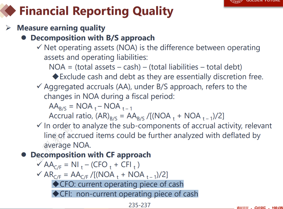 讲义PPT第235页下面,写的CFO和CFI,但解释为current operating piece of cash和noncurrent operating piece of cash?这两个是否就是Cash flow from operating和cash flow from investment?