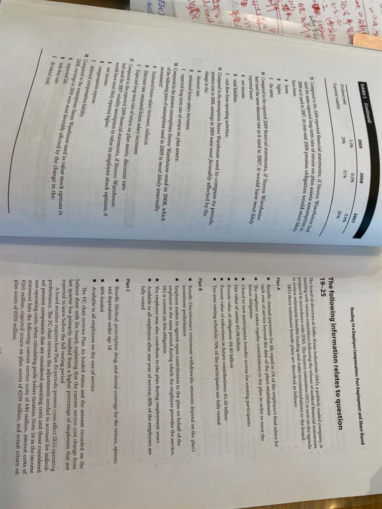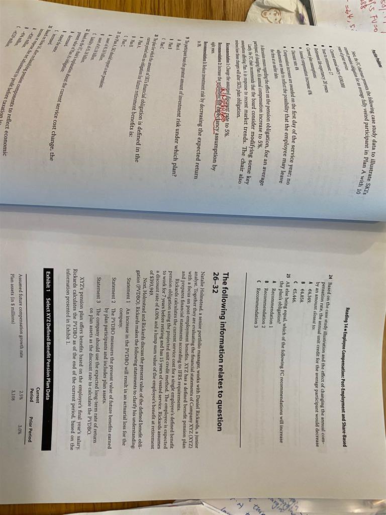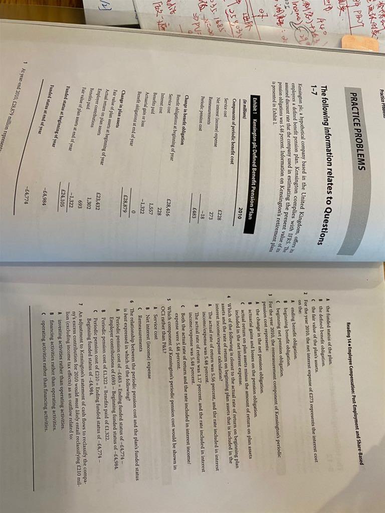 1. 第4题 AR 怎么理解?= FVbegining*r (5.56在题中哪里写的啊?)2. 第7题 它题目的意思是问重分类后么?不充分类210,因为CFO?3.第3张图中的第14题,选项C 该怎么理解,CF是受谁影响?EC和TPPC么?4. 第16题 没明白它题目意思?5. 17题 能解释下C么,它是由PBO在什么情况下产生的呢?