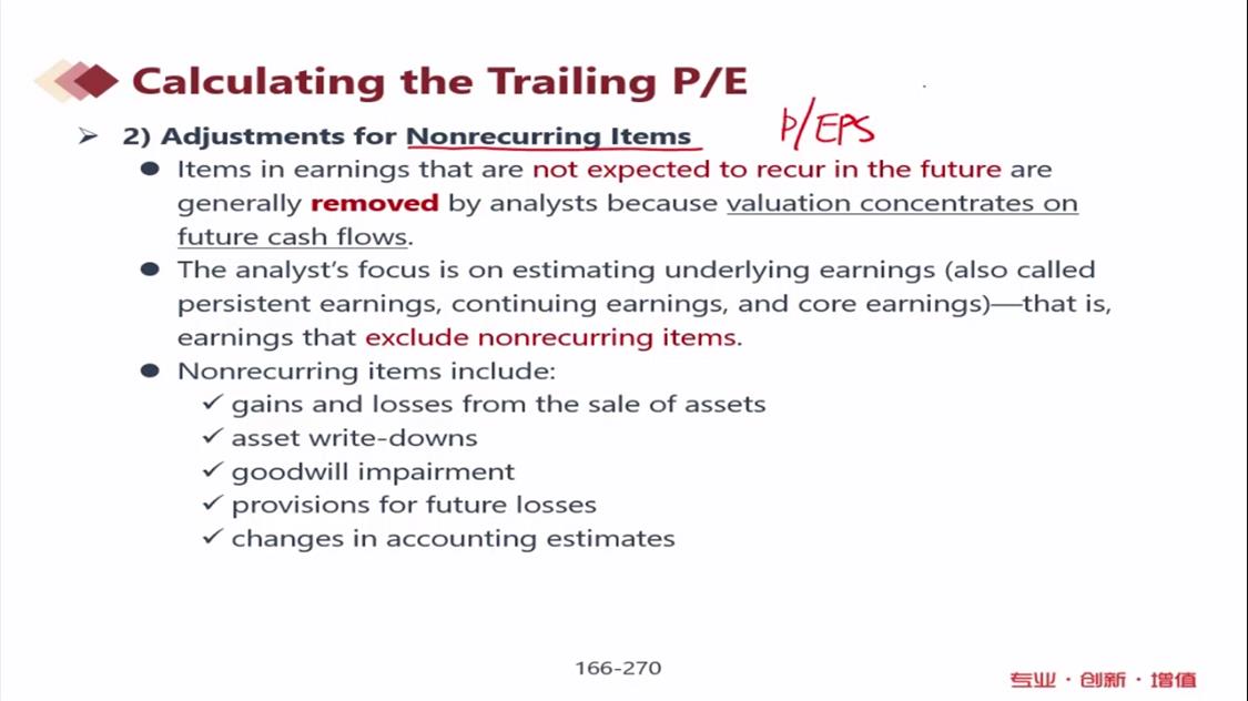 老师您好,这里老师说净利润中是包涵大量nonrecurring items的,为啥这么说呢?哪些是呢?请老师解释一下,谢谢!
