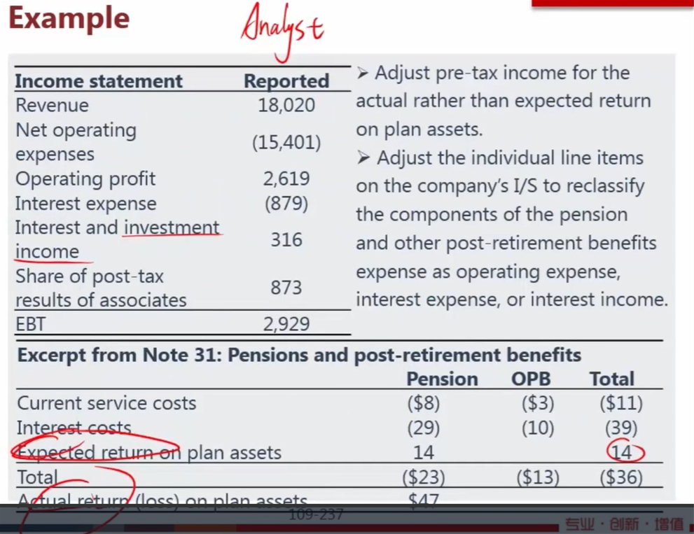 截图下方,current pension cost,int cost,expected return on plan asset为何和分pension和OPB列示?current pension cost,int cost应该只存在于OPB中,为何在pension中也有?expected return on plan asset应该是在利润表中,为何也在pension和OPB中也有?