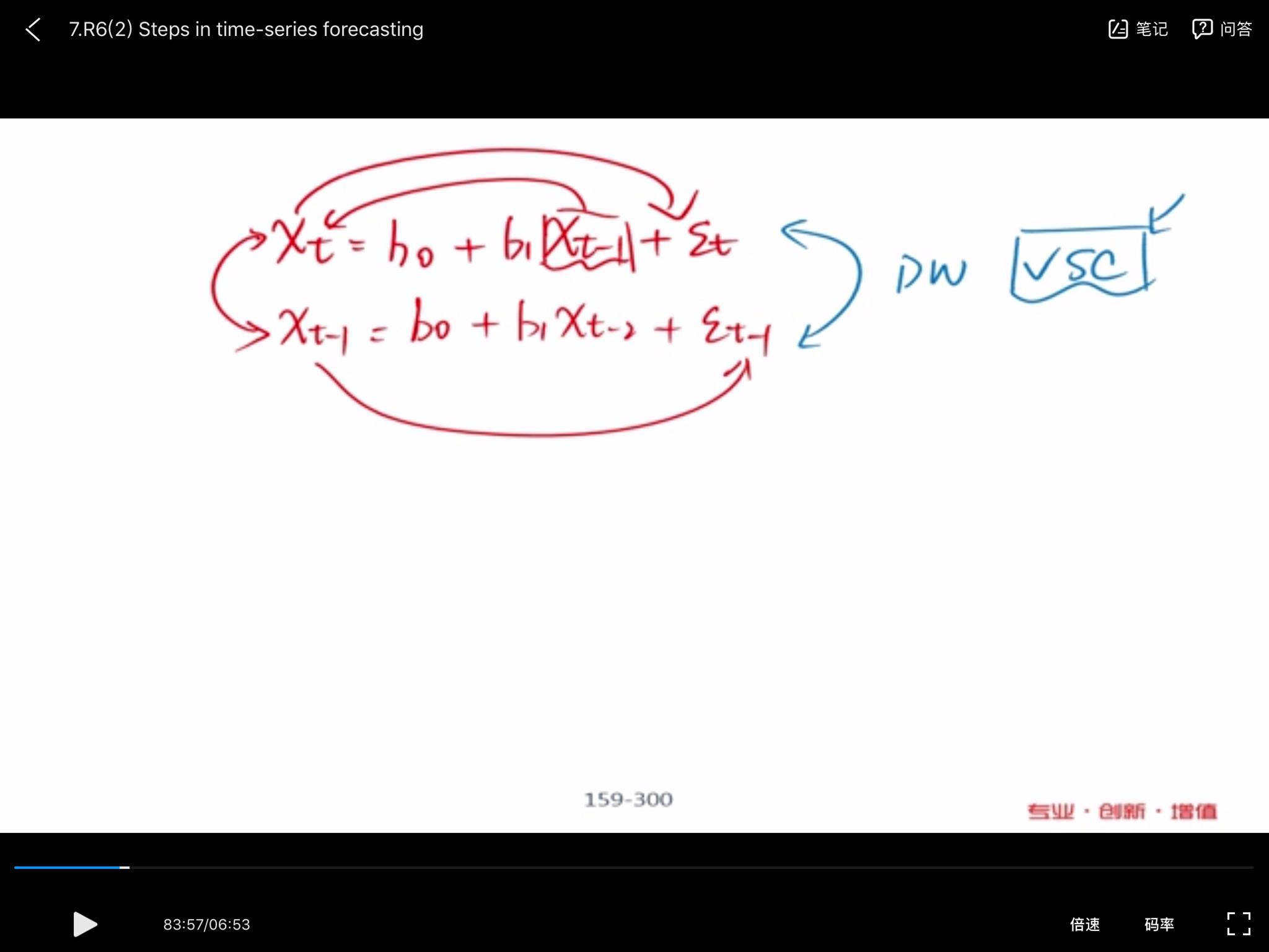 请问老师,视频这里说误差项在自回归模型中天然相关,为什么还要再验r(error i,error i-1)是否为零,AR的假设残差无序列相关不是肯定会被违反吗?