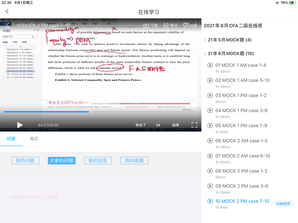 包含CFA二级传统在线课程、通关课程及试题相关提问答疑;