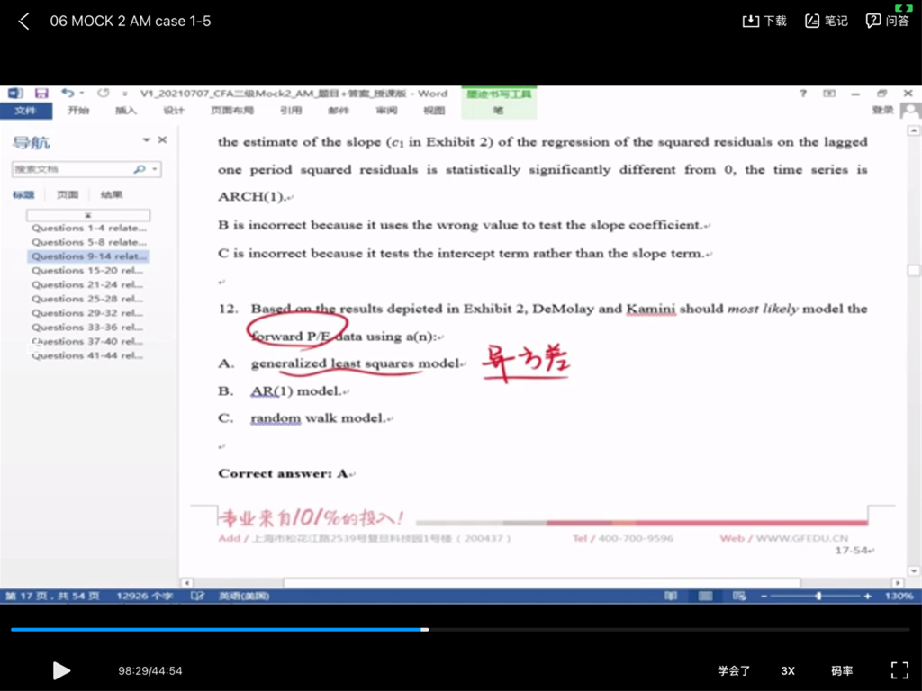 包含CFA二级传统在线课程、通关课程及试题相关提问答疑;