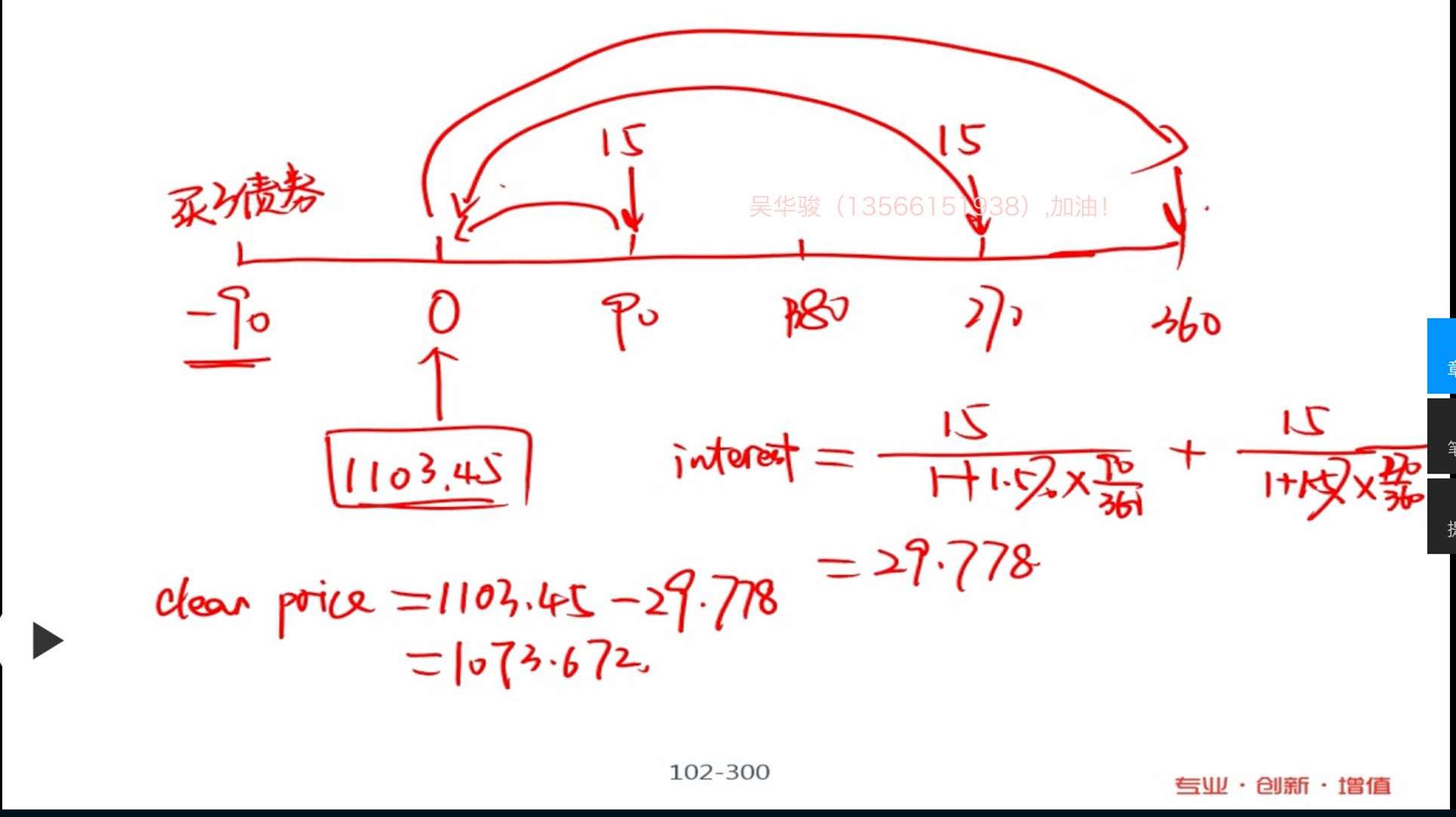 Mock 2 PM case 8 derivative 33题这里,题中说到bond price with accrued interest is 1103.45,这里的accrued interest应该是0时刻到现在3个月的accrued int吧,这应该是dirty int,是不是应该把这3个月的int先减掉呢?