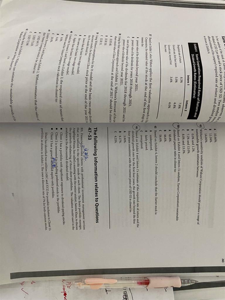 1. 38题 它文中表述的是从18年~21年增长率为5%,22年开始增长率为3%,在计算过程中,22年的terminal value 我就会写成2.315*(1+5%)^ 5次方* (1+3%),我该如何理解?2. 在第一阶段折现过程中,我就会把21年除3次方而不是4次方; 3. 39题,也是这个问题,在求H -M过程中,这个年限,我总觉得是3,不是4 ? 4. 41题也一样,在给Div2021年折现,我就会除3次方,以及在折现21年的Terminal value,我也会纠结是折4次方还是5次方? 谢谢~