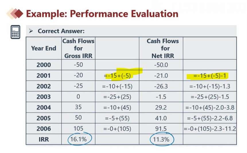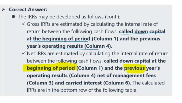 您好,这里说应该是本期的called down capital 加上 上一期的operating results, 那manament fee和carried interest应该是本期还是上一期的?比如拿2001举例(或者其他年份举例),2001年这行的 -15,-5, -1分别代表哪年的呢?不是很明白