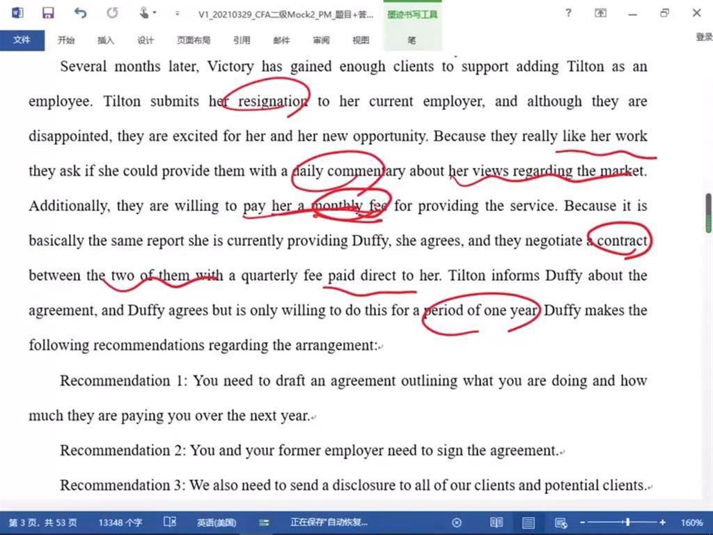 老师 模考2下午题第三题:Tilton 已经得到现雇主同意给前雇主提供报告为期一年,那 Tilton 为什么还会因为收钱而违反了独立客观性呢?
